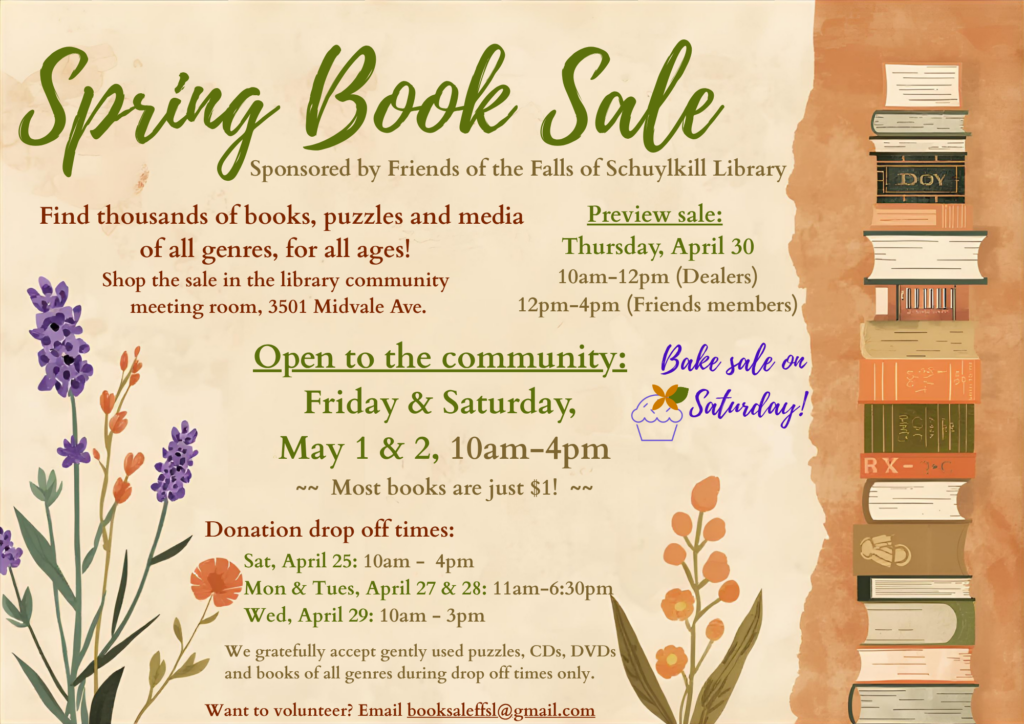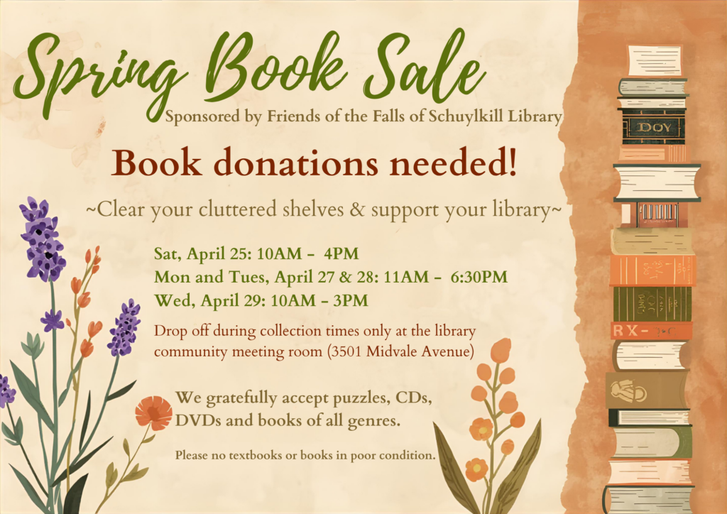 Join the Friends of the Falls of Schuylkill Library and partner with us in support of our Falls Library, a neighborhood treasure. Click here to learn more and to join.